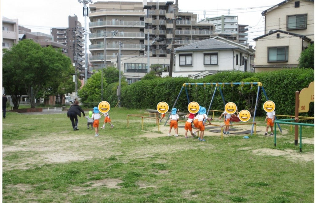 広い公園でクラス対抗リレー、ブランコや滑り台に砂場、雲梯などそれぞれ好きな遊具で思い切り遊んでいましたよ☆