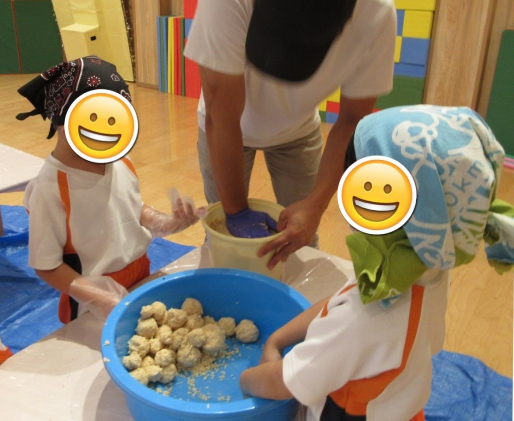子どもたちは温かい大豆、糀の匂いや手触りに様々な反応を見せてくれていましたよ(*^^*)